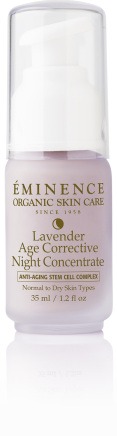 Eminence Lavender Age Corrective Night Concentrate – this not only softens fine line and wrinkles but adds hydration along with antioxidants to help with free radical damage.